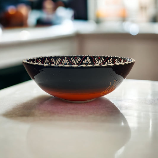 Bascuda XLarge Handmade Ceramic Tulip Bowl Orange Black 21cm